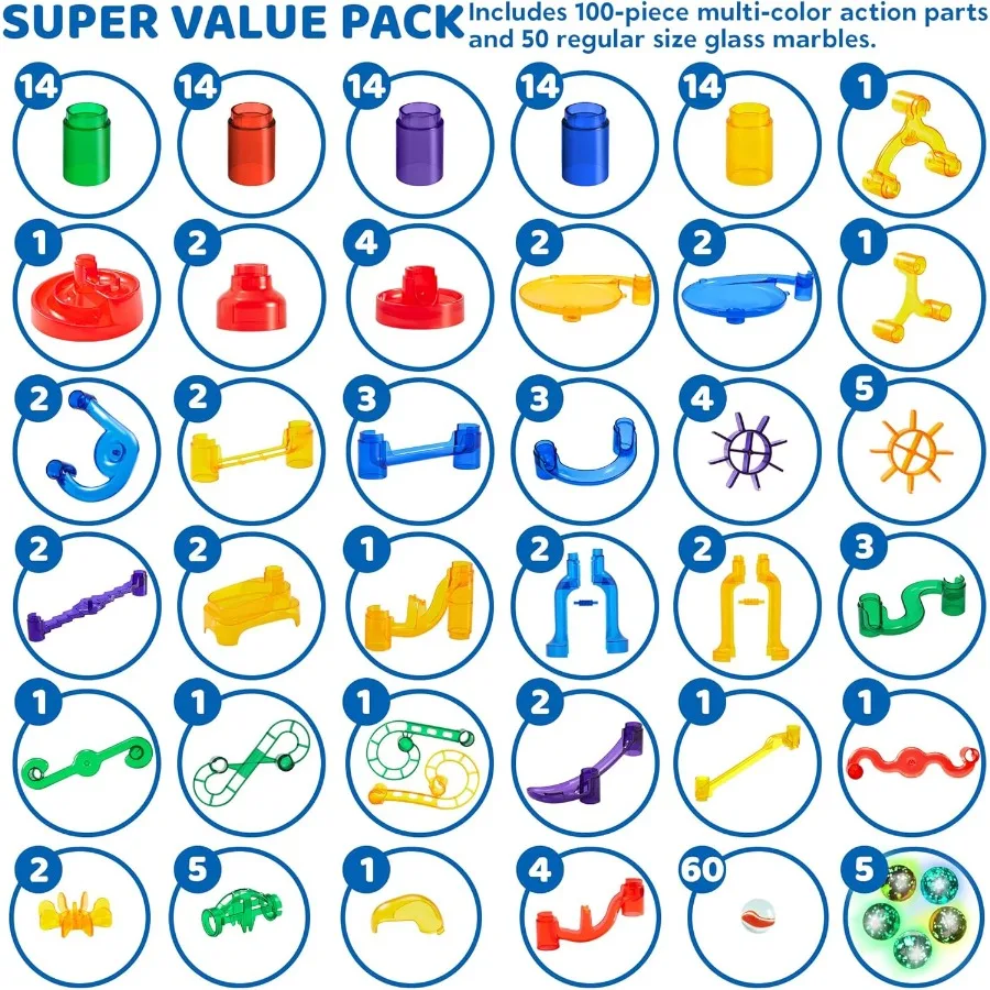 ราคาถูกและส่วนลด JOYIN 207 ชิ้นเรืองแสง Marble Run การก่อสร้างอาคารบล็อกของเล่น 5 Glow in The Dark Glass Marbles ของเล่น STEM สําหรับชายและ G ขายส่ง ซื้อโดยตรงจาก Shop1103852259 Store